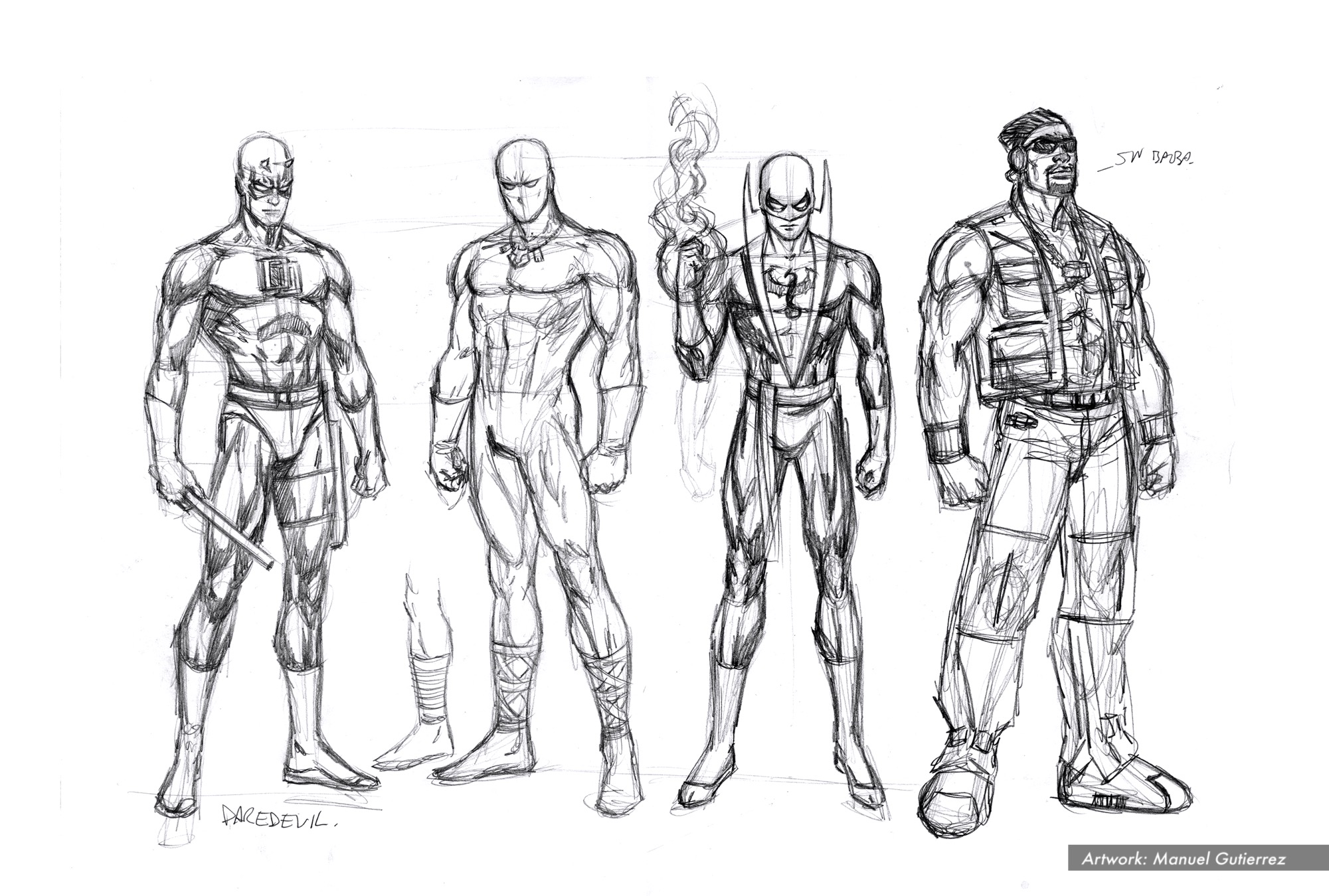 Daredevil “The Trial Of The Century” characters studies. DD, White Tiger, Iron Fist & Luke Cage. Pencils. Posted on June 1, 2018February 24, 2020