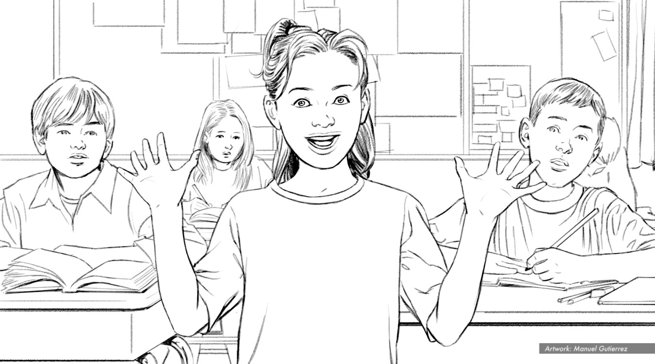 Zaterains, jazz hands, BW storyboard frame 17 – Peter Mayer