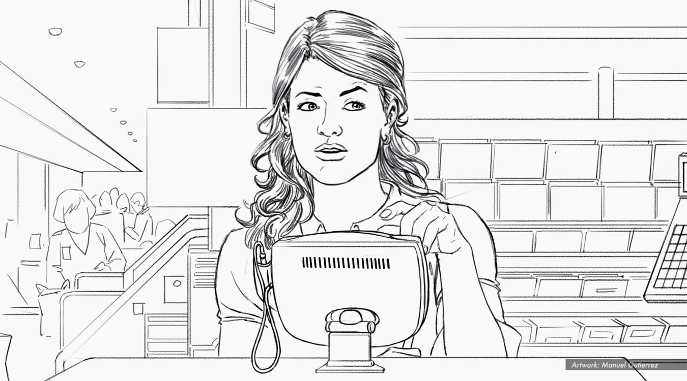 Vitacraves, Cashier, BW storyboard frame 7 – Energy BBDO