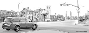 Dollywood, Minivan, BW storyboard frame 1 – Anthem