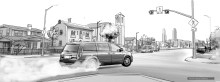 Dollywood, Minivan, BW storyboard frame 2 – Anthem