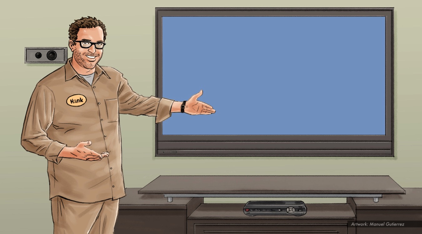 AT&T, cable guy, color storyboard frame 1 – Sanders/Wingo